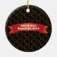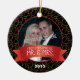 Julgran har en svart bakgrund med grönt och röd cirkel mönster och texten: Första julen som Mr. Och mrs The front har ett foto från anpassadet ram som du kan lägga till ditt favoritfoto från bröllop och ett anpassade som du kan lägga till året för ditt giftermål. Baksidan innehåller anpassade som du kan använda för att lägga till datum för namn och bröllop. Detta prydnadsföremål är en julklapp i perfekt för den nya bruden och brudgummen.