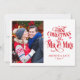 Första jul medan Mr. och Mrs. Personlig Photo Julkort visar ditt favoritfoto med texten "Första jul som Mr & Mrs" i elegant grått-kalligrafi-skript som accentueras med kärlek-hjärtan. Nedan står namn och året. Redigera texten i textrutorna som finns för att anpassa och lägga till ett eget foto. Designad av ©Evco Helgdagars www.zazzle.com/store/evcoholidays