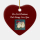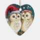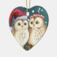 Sötnos, uggla par sitta tillsammans medan snö faller, finns på båda sidor om detta keramiska hjärtprydnadsämne. Frontdelen av dekorationen visar en förstorad bild av uggla-paret. Baksidan av prydnaden lyder: "Vår första jul Uggla Alltid Kärlek You", med en mindre bild av uggla-paret. En underbar dekoration för nyligen sysselsatt eller ny gifta par!