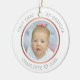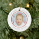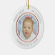 Den här personligen har julprydnaden en modern utformning av ro guld i faux. Anpassa namn, år och foton. Det är dubbla som står på sida med ett annat foto på vardera sidan. Den här mallen fungerar bäst med bilder i liggande format med baby i mitten.