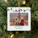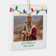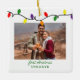 Första julen Engagerad! Gratulationer! Perfekt för att fira din förlovning eller spara datumet på ett roligt, vismiskt sätt! Den nutida, moderna och rustiska julens Helgdag, fotofyrkantsdekorationer, med en fin liten färgsträng av ljus i rött, grönt, gult och lila, tillsammans med modern typografi. Lägg till 2 av dina favoritfoton för perfektens ornament! Kontakta oss på cedarandstring@gmail.com om du behöver hjälp med designen eller matchande produkter.