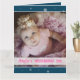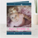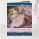 Julhälsningskortet är helt anpassade med fotot på ert nyfödda flicka och er egen text. Bakgrunden är blå, med vitt snöflingor. I texten om personlig rosa, på ett vitt rand, står det att det är första jul, med baby namn och födelseår. Kontakta mig gärna om du behöver hjälp, ytterligare anpassning eller andra matchande artiklar.