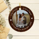 Fira magin med din första jul som förlovade med denna rustika träimitation 2-foto-ornament, designad för att fånga de speciella ögonblicken under din första jul efter förlovningen. Denna charmiga ornament har en träimitationbakgrund som ger en mysig, rustik touch till din juldekoration. Perfekt för ett pars första jul, låter den dig visa upp två favoritfoton, vilket gör den till en idealisk souvenir för din resa som det nya herrskapet.