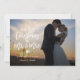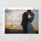 Modern julkort med texten "vår första jul som herr och fru" i ett modernt handskrivet typsnitt med ert foto i bakgrunden. Baksidan av kortet har falska silverglittrande snöflingor.