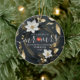 Första julen herr fru bröllop vit blomsterkrans julgransprydnad keramik