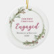 Fira din första jul som ett förlovat par med den här eleganten, minimal utandningsbild. Utandningen har ömtåliga röda bär med grönt bladaccenter. Enkel att anpassa med namn och år på framsidan och med fotot på baksidan.