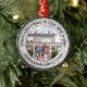 Gratulera till glädjen i ditt nya ställe med ett anpassningsbar foto "Första julen i vårt nya hem" runt metall-prydnadsföremål. Text och bild på den här mallen är enkla att anpassa. (IMAGE & TEXT DESIGN TIPS: 1) Lägg till blanksteg i början eller slutet om du vill justera skrivläget. 2) Om du vill centrera fotot exakt så som du vill kan du placera det i kvadratisk form innan du laddar upp det till Zazzles webbplats.) Utformningen har en elegant svart och vit faux marble gräns, modern minimal typografi från namn och år, och en bilder från ditt val. Den här unika familjekvarnén tillför en snyggt till Julafton hemmabruk eller gör en tänkbar hemmavarsliknande dekoration. Det finns ingen ställe som ett nytt hem för helgdagarna!