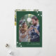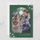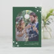Modern stilren 2kalligrafisk skrift första julen tillsammans som herr och fru foto bröllop drakgrönt högtidskort med valv foto, anpassad text och vita snöflingor. Lätt att anpassa med 2 foton och text på båda sidor!