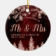 Vår första jul som Mr & Mrs. på en chic och elegant som är ro, guld, glitter och gräs träd på röd vattenfärg.