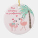 NewParkLane - julprydnad för nya morföräldrar, med en tropisk scen med två söta rosa flamingos med en julhatt och en baby-flamingo och ett dekorerat palmträd. Med citat: "Första jul som morföräldrar" vid rosan av hallon. Du kan ändra all stilar, färg och alla storlekar efter behov. En underbar, varaktig julklapp för första gången med nyfödda föräldrar! Checka ut den här samlingen för matchande artiklar! Har du någon särskild personlig design för önskemål? Kontakta mig gärna!