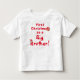 Första julen syster/tröja design har frasen, "Första julen som "Storebror!" i ljusröda bokstäver. Texten "Storebror" kan ersättas med "Storasyster" eller någon annan text du önskar ange. En tomtehatt visas stående på kanten av bokstaven "S" för Storebror och en julkrans hänger lekfullt på slutet av ordet julen. Små gröna och röda prickar visas genomgående. Designad för att komplettera "Första julen" kollektionen.