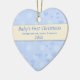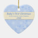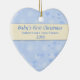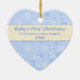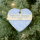 Fira minnet av den första julen av en pojke. Den söta pojkeprydnaden i blåttpolka pricker med ett kräm- baner för text. Blåtthjärtor flyter över designen. Personifiera bebis namn och år. En perfekt fundersam gåva för nya föräldrar som firar deras första jul med en pojke.