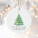 Skapa din egen första julgift med dekoration med egna namn och år vid sidan av eleganten med vattenfärgen Julgran och anpassningsbar på baksidan.