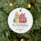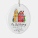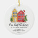 Bara perfekt Första julen i vår nya lägenhet prydnadsföremål med en söt lägenhet byggnad.vinterscen och modern kalligrafi. Din första julklapp.