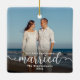 "Första julen gift", lägg till dina foton från bröllop på framsidan och baksidan, dubbla 2-sidig ornament... Snyggt Loose and avslappnad script typography, your namn and year or other text. Modern skriptskrivning med enkel avslappnad elegant. Fira ditt första år som mr och mrs, gift med den vackra keepsaki-bröllop-presenten för brud och groom-ornament. Ladda upp fotot för att skapa en fullt-blek julprydnad, en underbar presentidé som nygifta, bröllopsfest eller andra vänner och familj.