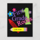 En söt första klass sten-design. Med en penna, en kräft och blommor.