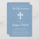 Gratulera till milstolpen i helig i er sons första Heliga-gemenskap med denna framstående inbjudan. Mot en säker dammig blå bakgrund symboliserar ett ornat kor med strålande strålar andlig betydelsen av detta betydelsefulla tillfälle. Modern typografi i vitt på ett skickligt sätt presenter i ord "Första Heligan-kommissionen" vid sidan av er sons namn, som fångar högtidligheten och vändningen av händelsen. Denna inbjudan är sofistikerad och skonsam och bjuder in nära och kära att delta i firande i er sons trosresa.