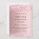 En övertoningsbakgrund för rosa. Dekorerad med rosa faux glitter, konetti och kor. Anpassa och lägg till namn och detaljer. Namn är skrivet med ett handskript i stil