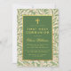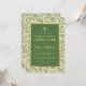 Denna elegant botaniska, könsneutrala första gemensamma inbjudan har grönt som lämnar mönster i bakgrunden och baksidan. Texten finns i en rektangel med gröntar som har faux guld foil gräns. Det finns ett (faux) guld kor ovanför texten. All text kan vara personlig och ha ett gyllene färg som liknar ram i guld. Namn är skrivet i ett kalligrafiskt skript för elegant, resten med versaler. Vintagens bakgrund mönster är mönster från 1800-talet i tapet av William Morris (1834-1896), kallad "Willow Bough", bestående av viljeproducerat grenar med grönt lövs, nu offentligt.