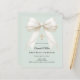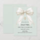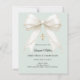 En mjuk blek salvia grön bakgrund, dekorerad med en stor båge med pärlor och ett gyllene kors. Anpassa och lägg till ett namn och detaljer.