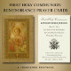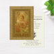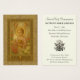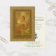 Denna utsökt dekorerade heliga kort framställer Kristusbarnet i ett ögonblick av djup eukaristisk vördnad. Klädd i en roséfärgad tunika och krönt med en gyllene gloria, lyfter Jesusbarnet varsamt en strålande hostia med ”IHS” ingraverat, medan han kärleksfullt håller om en gyllene kalk – symboler för Hans verkliga närvaro i det välsignade sakramentet. Två beundrande änglar svävar ovanför i bedjande hänförelse, deras närvaro en påminnelse om himmelens närhet vid varje helig kommunion. Omgiven av en krans av blommande rosor och liljor, är bilden inramad i en utsmyckad liturgisk guldbård med invecklad eukaristisk detaljrikedom, inklusive ett kalkmotiv