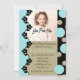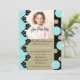 Rolig inbjudan med blommor och bubblor och foto. Lägg till ett favoritfoto och ändra texten för valfri tillfälle. Massor av utrymme på baksidan för ytterligare text.