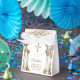 Första kommunion Rosa Blommor Båge Kors Presentaskar