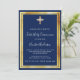 En modern elegant och inbjudan. En marin blå bakgrund som dekoreras med kor, faux guld ramar. Anpassa och lägg till namn och detaljer. Vit text.
