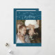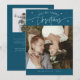 Minimal- och elegant-kort för nyfödda som firar sin första jul tillsammans som make och hustru med texten "vår första gifta jul" med punkter och hjärtan. Bakgrunden är teal.
