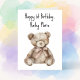 Tvätta vattenfärgsnallen på ett barns första födelsedagskort. Namn och känslor kan förändras. AI-assisterad grafik som köpts med kommersiell använda. Bild: FreyasDigitalCrafts