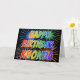Den här roligten, ett dynamiskt, flerfärgat gratulationskort för födelsedag, har budskapet "GRATTIS PÅ FÖDELSEDAGEN" och det vanligaste namn "RHONDA", där brev har ett färgstarkt regnbågsspektrum som färgning av mönster. Bakgrunden till framsidan har också en färgstark mönster som inspirerats av att fyrverkerier sprider sig. Insidan innehåller ett anpassade hälsning-meddelande, eller så kan det kanske rensas och lämnas tomt om ett meddelande ska skrivas för hand i stället. Ett sådant här födelsedagskalkokort kan vara ett roligt sätt att erkänna att någon vid namn Rhonda fyller år. [~Z0000350]