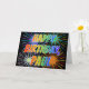 Den här roligten, en pulserande, flerfärgad gratulationskort för födelsedag, har meddelandet "GRATTIS PÅ FÖDELSEDAGEN" och det vanligaste namn "PAUL", där brev har ett färgstarkt regnbågsspektrum som färgning av mönster. Bakgrunden till framsidan har också en färgstark mönster som inspirerats av att det ser ut som om man sprider berömda fyrverkerier. Insidan innehåller ett personlig hälsning-meddelande, eller så kan det kanske rensas och lämnas tomt om ett meddelande ska skrivas för hand i stället. Ett sådant här födelsedagskalkokort kan vara roligt till ge till någon som heter Paul på deras födelsedag. [~Z0000350]