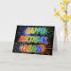 Den här roligten, ett dynamiskt, flerfärgat gratulationskort för födelsedag, har budskapet "GRATTIS PÅ FÖDELSEDAGEN" och det vanliga första "QUINN" för namn, där brev har ett färgstarkt regnbågsspektrum som övertoningsfärgning mönster. Bakgrunden till framsidan har också en färgstark mönster som inspirerats av att fyrverkerier sprider sig. Insidan innehåller ett anpassningsbar hälsning-meddelande, eller så kan det kanske rensas och lämnas tomt om ett meddelande ska skrivas för hand i stället. Det kan vara ett roligt sätt att erkänna att någon vid namn Quinn fyller år. [~Z0000350]