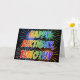 Det här flerfärgade kortet för hälsning på roligten och födelsedag innehåller meddelandet "GRATTIS PÅ FÖDELSEDAGEN" och det vanliga första namn "TIMOTHY", där brev har ett färgstarkt regnbågsspektrum som övertoningsfärgning mönster. Bakgrunden till framsidan har också en färgstark mönster som inspirerats av att fyrverkerier sprider sig. Insidan innehåller ett anpassade hälsning-meddelande, eller så kan det kanske rensas och lämnas tomt om ett meddelande ska skrivas för hand i stället. Ett hälsningskort som detta kan vara ett sätt att skicka ett roligt till någon som heter Timothy för personligens födelsedag. [~Z0000350]