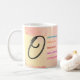 Mugg kommer att vara en favorit för alla från din mormor till din tonårssyster. Med högernas budskap kan ett mugg bli någons skattade följeslagare till komen i åratal. Den här designen har ett vackert, handritat "O" i brev i svart kursiv stil på en fantastisk vattenfärgsbakgrund. Den lämnat sidan visar en varm övertoning mellan gult och rosa, medan högerna visningar en mjuk övertoning mellan rosa och gult. Området kring brev är vibrerande ord i olika färg, inklusive blått, orange, rött, lila och rosa, vilket belyser de positiva egenskaperna från brev O. Den övergripande effekten är en visuellt tilltalande och upplyftande design som firar skönheten hos "O"-brev och dess egenskaper. Vattenfärgsbakgrunden tillför en smula elegans och sofistikering och skapar den här perfekten för inspiration eller motivation.