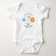 Dekorerade baby-kroppsdräkt med första Resa runt Sol-temat för en pojkes första födelsedag party. Detta koordinerar med det andra rymden-temat decor för celestial galaxy party. Checka ut samlingen om du vill se alla samordningsobjekt. Dessa kan redigeras för att lägga till ditt personlig-meddelande eller namn.