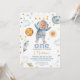 Första Resa runt Sol QR-koden 1:a födelsedagarinbjudan Sweet rymden eller första resa runt den första födelsedagsinbjudan till pojke som visar din lilla pojkes foto i hjälmen. Den första resa runt sol 1:a födelsedag-inbjudan innehåller också en liten sol, planeter, stjärnor, rymdskepp och rymdfarare. En utbytbar QR-kod visas på inbjudningens baksida.