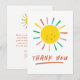 Ett första resan runt solen barnkalas 1-års födelsedagsfest tackkort med söt sol och modern design. Klicka på redigeringsknappen för att anpassa denna design med dina detaljer.
