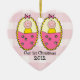 Första rosa jul för tvilling- flickor julgransprydnad keramik