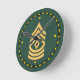 Arméklockan är dekorerad med arméns färger grönt och guld och första sergeant insignia.
