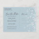 Detta stilrena Spara datum-kort har delikat snöflingor som faller över era personliga namn, det speciella datumet och detaljer om firande evenemang på en vinterfrostig bakgrund. Baksidan har ytterligare information om att spara datumet, inklusive er bröllopswebbplats, med er returadress och utrymme för mottagarens adress. Designad av Thisisnotme