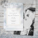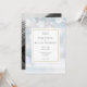 Med fint fallande snöflingor mot en vinterfrost bakgrund. Era bröllopsdetaljer hamnar inom en elegant gyllene geometrisk ram med ert speciella foto på baksidan. Designad av Thisisnotme©