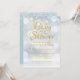 Linda snöflingor faller över din könsneutrala baby shower, strössel eller par shower detaljer, satta i elegant guldbokstäver på en magisk vinterbakgrund.