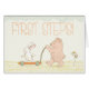 Ett baby som tar sina första steg är en speciell milstolpe att fira! En söt björn kör en kanin på en vagn. Perfekt kort för en liten pojke eller flicka!