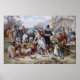 Vintage bra art Jean Leon Gerome Ferris första Thanksgiving, c. 1912 har pilgrimfamiljer med inhemska amerikanska bomber Människor som firar Thanksgiving med kalkoner och maj.