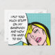 Åh, mänskligheten! Den här tecknaden inspirerade bok till vykortsdesign och pockar roligten på problem i första världen. Den har en känslosam ung kvinna och en tal-bubbla som lyder: "Jag satte för mycket saker på min smörgås och nu är det svårt att äta." Kvinnan och tal-bubblan är på akvatisk och vit polka-punktbakgrund. Låt oss hoppas att hon kan hitta den inre styrkan att fortsätta!