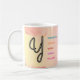 Mugg kommer att vara en favorit för alla från din mormor till din tonårssyster. Med högernas budskap kan ett mugg bli någons skattade följeslagare till komen i åratal. Den här designen har ett vackert, handritat "Y" från brev i svart kursiv stil på en fantastisk vattenfärgsbakgrund. Den lämnat sidan visar en varm övertoning mellan gult och rosa, medan högerna visningar en mjuk övertoning mellan rosa och gult. Området kring brev är vibrerande ord i olika färg, inklusive blått, orange, rött, lila och rosa, vilket belyser positiva egenskaper som börjar med brev "Y". Den övergripande effekten är en visuellt tilltalande och upplyftande design som firar skönheten hos brev "Y" och dess egenskaper. Vattenfärgsbakgrunden tillför en smula elegans och sofistikering och skapar den här perfekten för inspiration eller motivation.