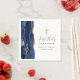 Den lämnat kant i denna elegant napkin har en marin blå vattenfärgsagat gräns som trimmas med faux guld glitter. En faux guld-folie kor visas ovanför anpassadet, som kombinerar handskrift, tryckplåt och kursivt typsnitt i kol-grått på vit bakgrund. Anpassa den med hedersgästens namn och datumet.