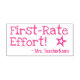 Den här roligt gummikonstruktionen frimärke innehåller det uppmuntrande budskapet "First-Rate Effort!" och en personlig lektor namn. Den har också en dekorativ stjärnform. Lärare, lärare, instruktörer eller lärare skulle kunna använda det när de graderar student för att erkänna att ett student har gjort ett enastående arbete.