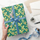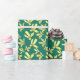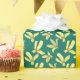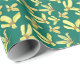 Handgezeichnete Illustration von gelben Forsythienblüten auf grünem Untergrund als Endlosmuster.